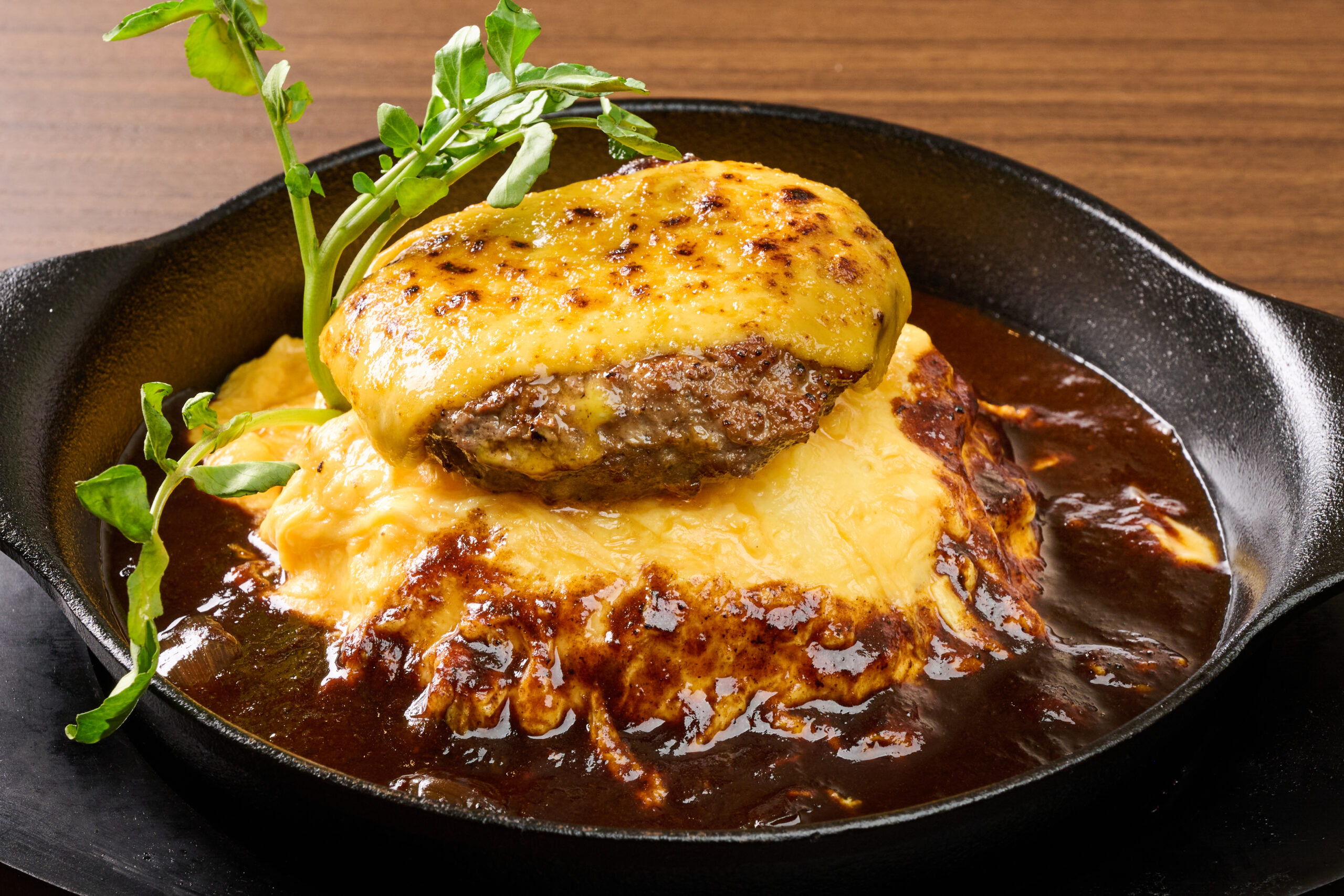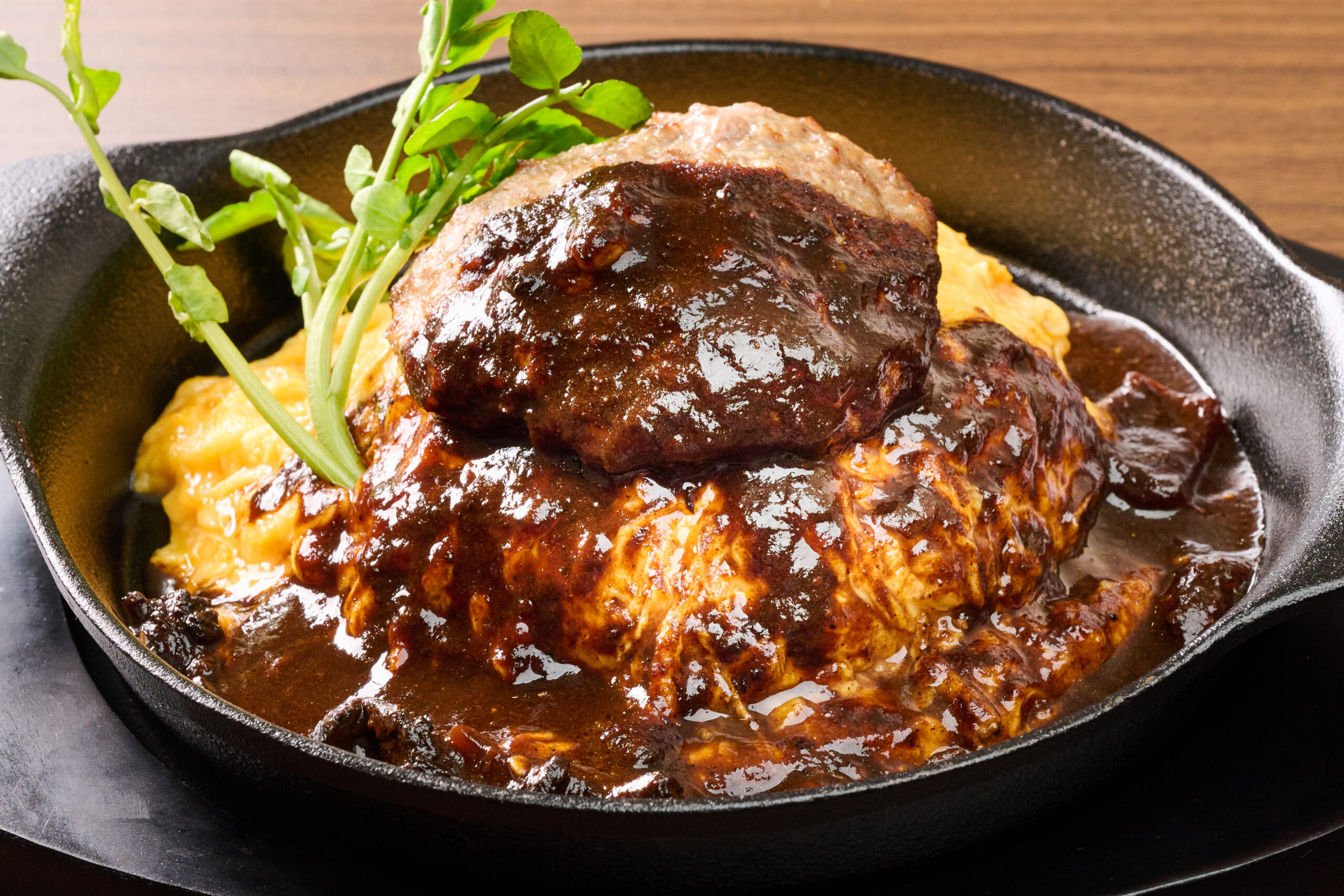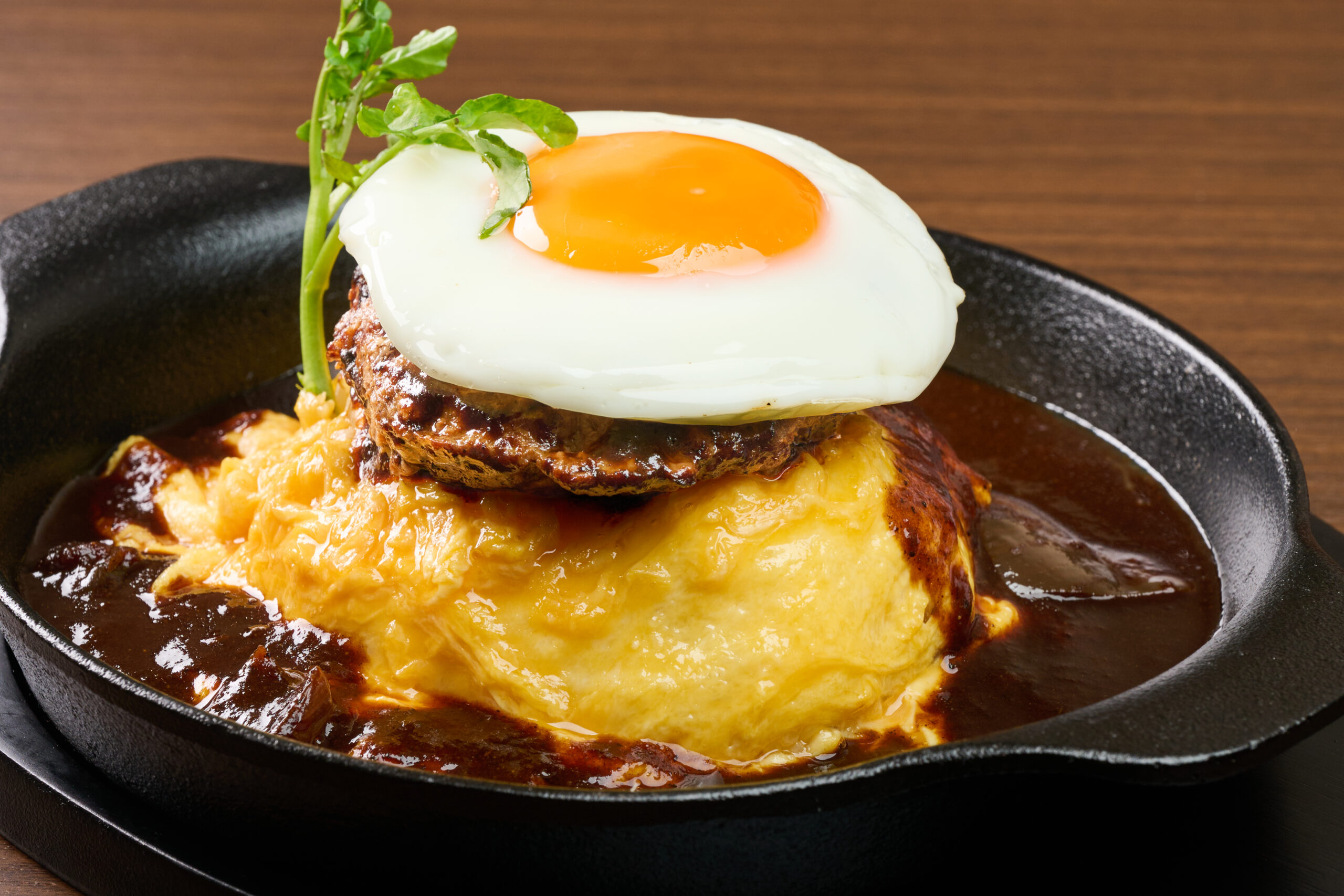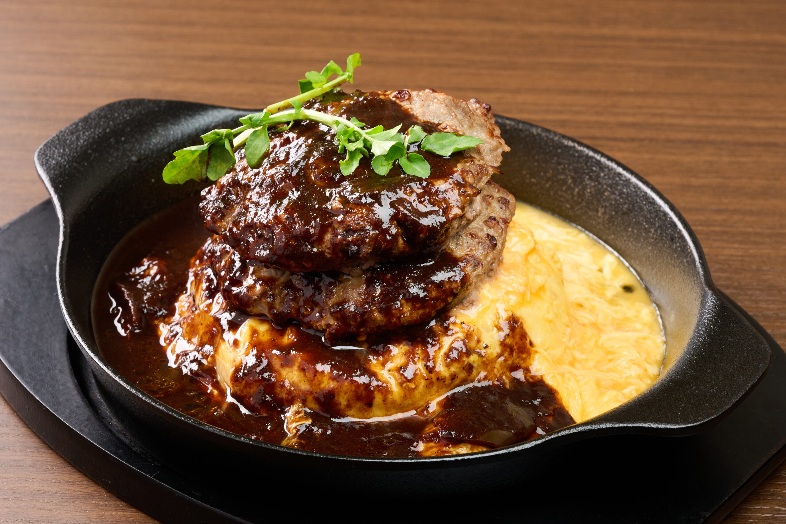 和牛カツ&和牛ハンバーグオムライス 3,400円(税込) サクッとした和牛カツと、旨みあふれる和牛ハンバーグを一度に楽しめる贅沢なオムライスです。ふわとろたまごに、食べごたえのある二つの和牛トッピングを合わせ、満足感たっぷりの一皿に仕上げました。 こちらもおすすめ ※表記は税込価格です 和牛ハンバーグオムライス 2,700円 和牛チーズハンバーグオムライス 2,900円 和牛ハンバーグ&目玉焼きオムライス 2,950円 ダブル和牛ハンバーグオムライス 4,440円